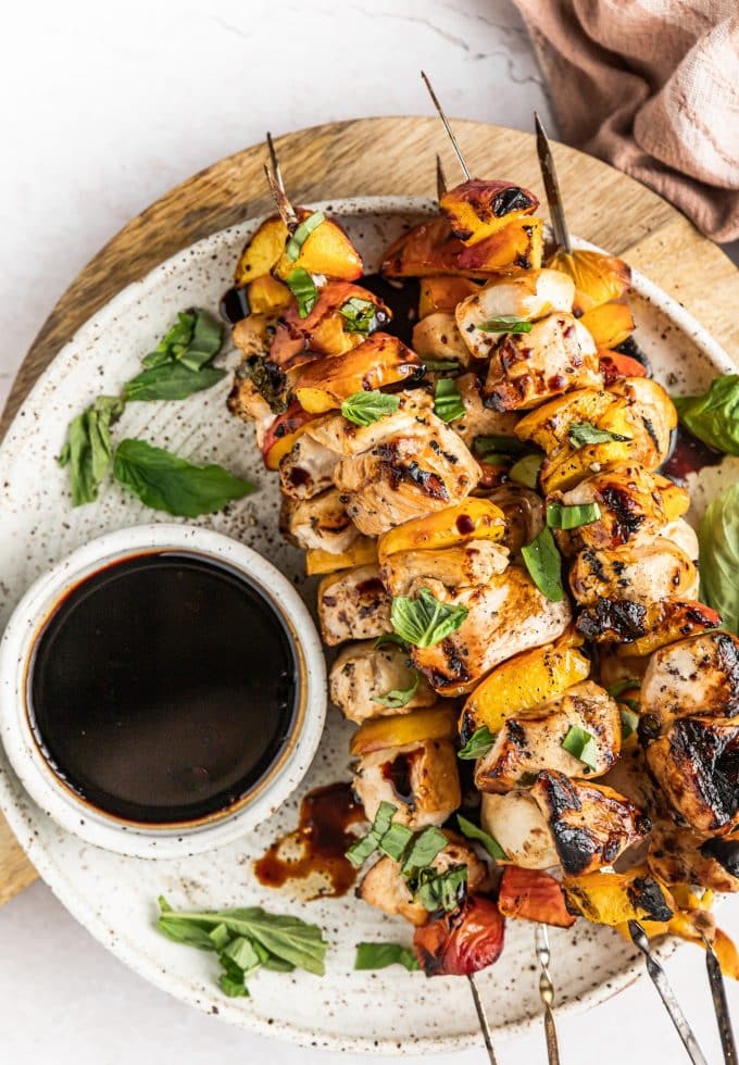 How to do it? Let your chicken marinate. Assemble the kabobs by alternating between chunks of tender marinated chicken and peaches. Grill. Create your balsamic glaze. Drizzle. You’re done!