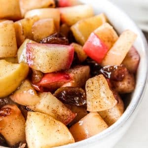 Raisins give this dish additional sweetness. They plump and soften as they’re sautéed so they compliment the tender apples beautifully.